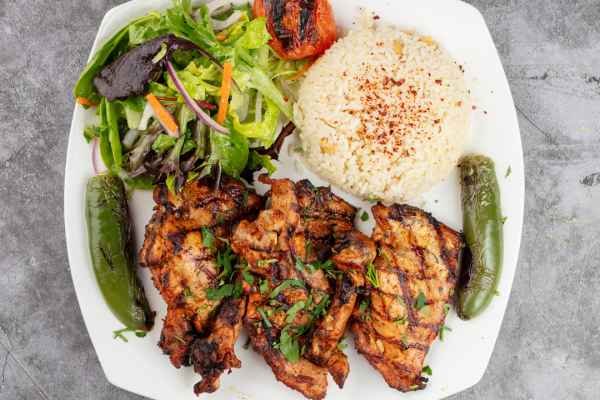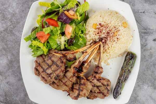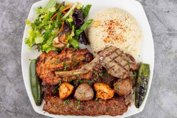 Chicken shish, lamb shish, gyro, lamb chop and lamb adana. Served with rice and mixed salad.